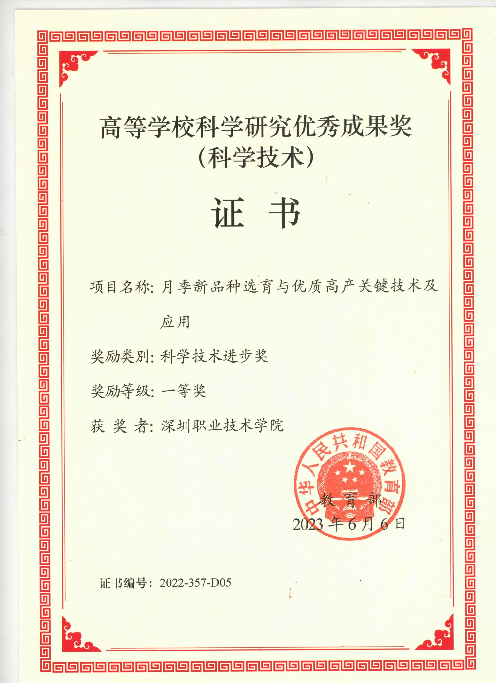 近日,教育部颁发了高等学校太阳成集团优秀成果奖(科学技术)获奖证书,中国农业大学教授高俊平领衔、我校教授李永红共同完成的“月季新品种选育与优质高产关键技术及应用”项目荣获科学技术进步奖一等奖。我校为第5完成单位。
