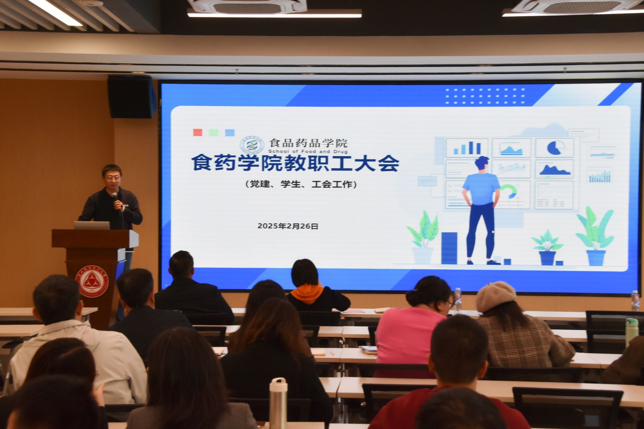 段杰鑫则聚焦学生管理、党建思政、就业服务、工会等工作,强调以党建引领为核心,狠抓“理想信念、专业知识、综合素质”教育,紧密契合食药专业特色,加强心理健康教育和学风建设,提升学生可持续发展能力,同时依托产教联盟,持续访企拓岗,稳定就业资源,助力学生高质量就业。此外,他还对工会工作进行了部署,强调要进一步提升教职工的凝聚力和归属感。