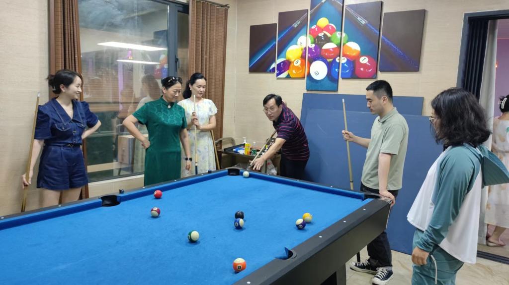 活动中,老师们利用续缘小院场地设施,开展了台球、唱歌、篮球投准、拖拉机扑克牌、游戏等丰富多彩的室内活动,在山顶靶场开展了射箭比赛,实地体验了菜园采摘等特色活动。活动适逢刘莉萍教授荣休欢送会,书画俱乐部还通过现场献诗等方式送去祝福。
