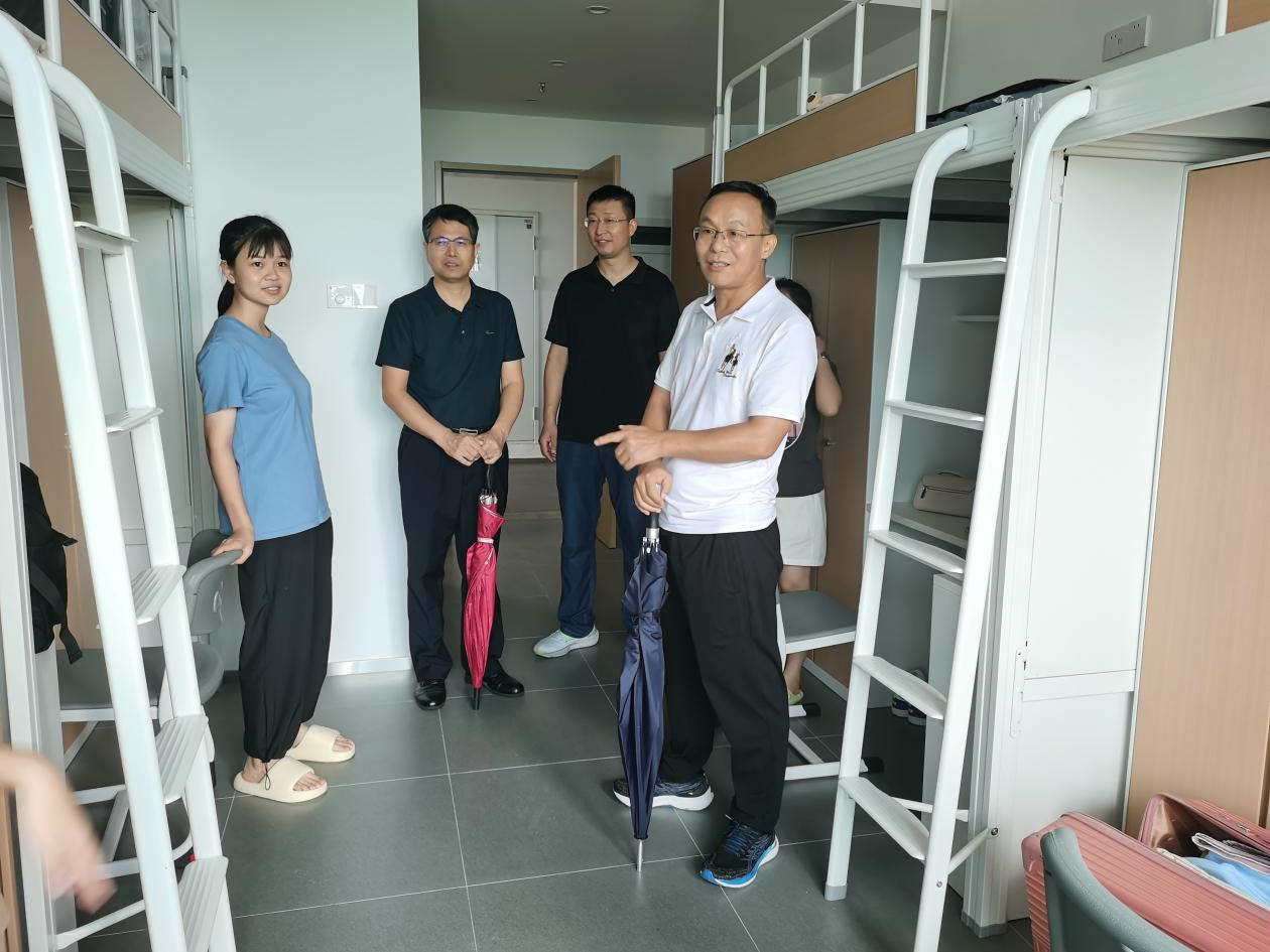 9月9日,食药学院2023级新生入学报到。当晚,学院领导、专业主任及各班班主任一行陆续前往瀚园E栋、旺棠学生公寓看望2023级新生。学院领导亲切询问了新生来校感受、食堂餐饮和学生住宿等多方面情况,了解大家对学校的适应情况,耐心倾听新生们的反馈,对学生提出的问题现场给予了答复。刘冬院长叮嘱同学们,良好的开端是成功的一半,同学们在校期间要积极适应新的校园生活,要严格遵守学校的规章制度,注意宿舍卫生,鼓励同学们结合学院专业特色形成自身的寝室文化,要与室友融洽相处,多看书、多学习、多锻炼,同学之间相互照顾,营造良好的寝室氛围。最后,提醒同学们尤其要注意谨防电信诈骗,提高安全意识。