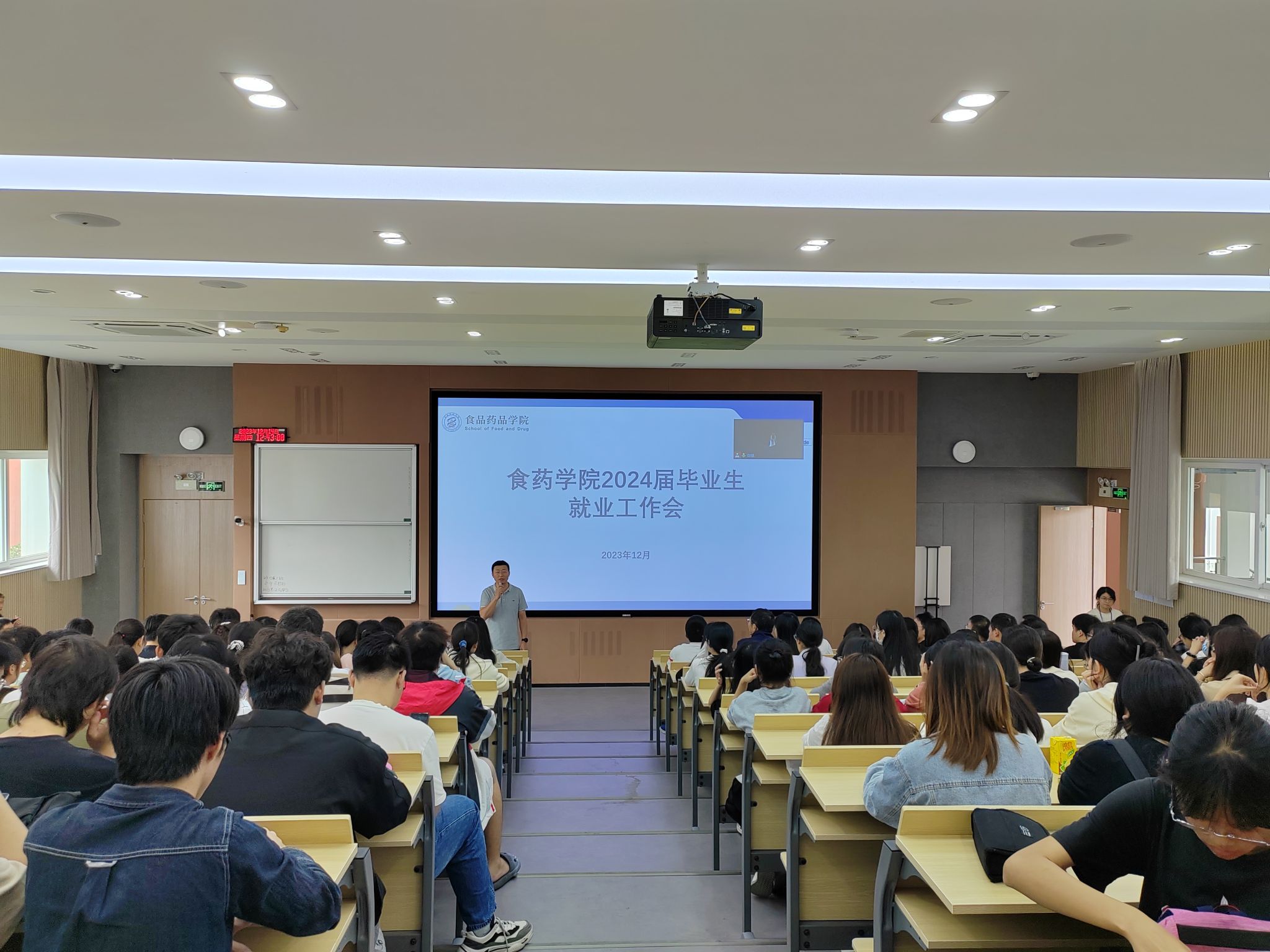 12月14日、15日,食药学院在北校区分专业群召开2024届毕业生就业工作师生座谈会,参加座谈会的有学院领导、专业主任、班主任、顶岗实习指导老师及专业群所有学生。座谈会首先由食药学院党总支副书记段杰鑫分析今年就业形势,为学生阐明往届毕业生就业情况以及就业需要注意的事项,食药学院副院长黄略略针对实习相关问题,关于如何选取适合自己的实习单位做了专业解答,会议最后环节,由学生自由提问,关于实习时长、签订实习协议等事项,实习指导老师和班主任现场一一解答。本次师生座谈会,为2024届毕业生指明了就业方向,为高质量就业打下基础。(食药学院 刘根柱)