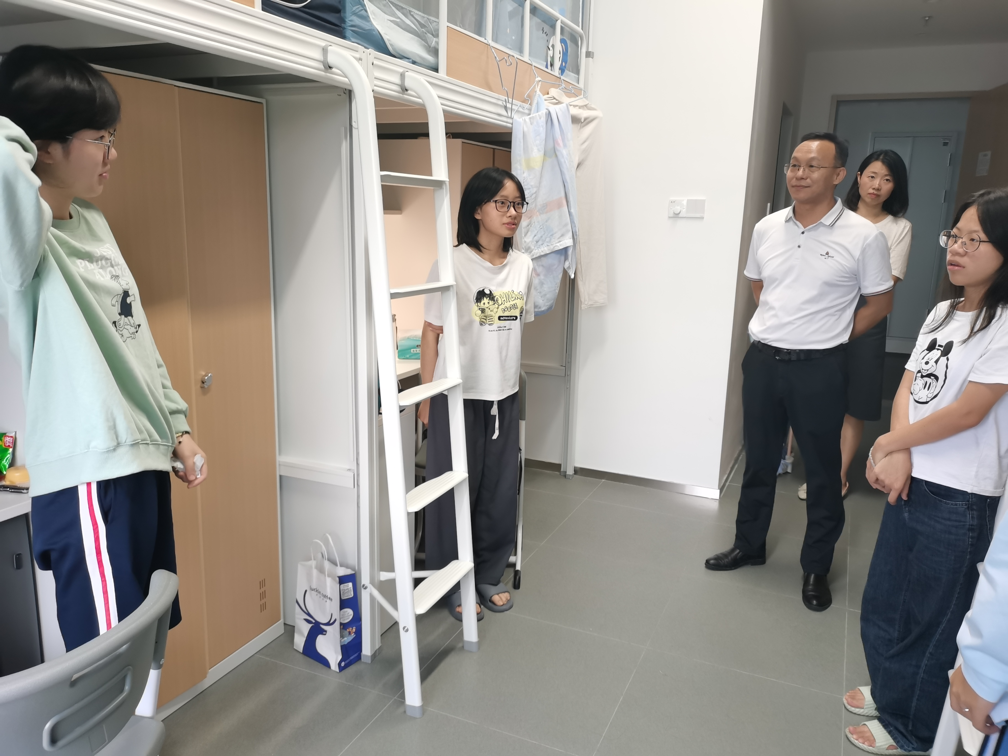 为进一步了解大一新生适应情况,10月13日下午,太阳成集团122ccvip党总支书记、院长刘冬在太阳成集团122ccvip辅导员的陪同下,深入走访了瀚园E座大一新生宿舍,看望和慰问学生。