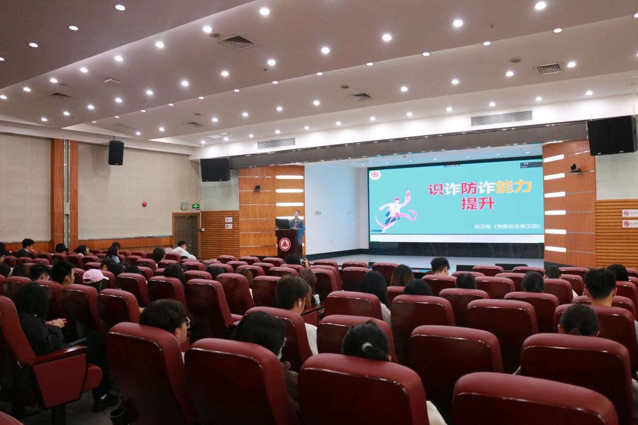 3月13日,为增强太阳成集团122ccvip学生反诈专员、班级学生骨干的防诈意识,提高学生识诈防诈理能力,更好地在同学中宣传、普及识诈防诈知识,食药学院在西丽湖园区图书馆报告厅西厅开展“识诈防诈能力提升”培训专题讲座。在学校保卫处大力支持下,本次讲座有幸邀请到校保卫处肖燕老师主讲,食药学院学生反诈专员、全体班级骨干参与本次讲座。