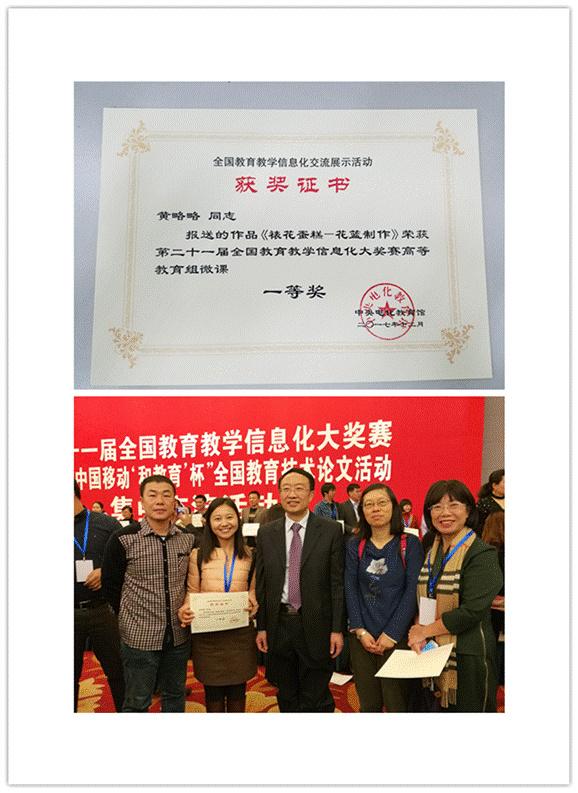 12月17日至19日,第二十一届全国教育教学信息化大奖赛在北京举行,我校教育技术与信息中心选送的化生学院黄略略博士微课作品《裱花蛋糕—花篮制作》从442件参赛作品中脱颖而出,荣获高等教育组一等奖。