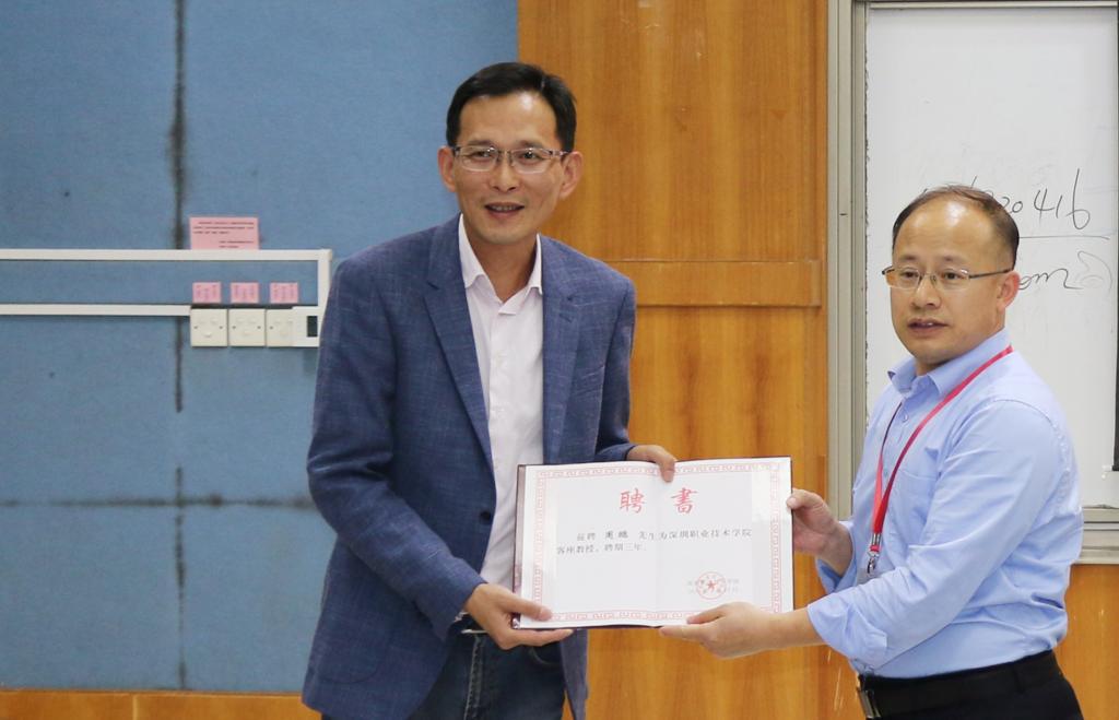 11月27日,化生学院在留仙洞校区德业楼107举行深圳市标准技术研究院副院长周鹏受聘我校客座教授聘任仪式,化生学院分党委书记吴猛,副院长谢利娟、李永红、朱俊晨出席仪式。吴猛代表学院为周鹏颁发了聘书。